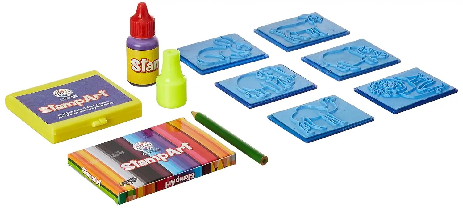 > Ratnas present stamp art of animal to create many different things like designing your notebook label, greeting cards, notebook cover, picture frames and many more. Color your master piece with various color and make your own jungle. It contents 6 animal stamps, white sheets, stamp pad, pencil colours that will help your child to create there own master piece.
