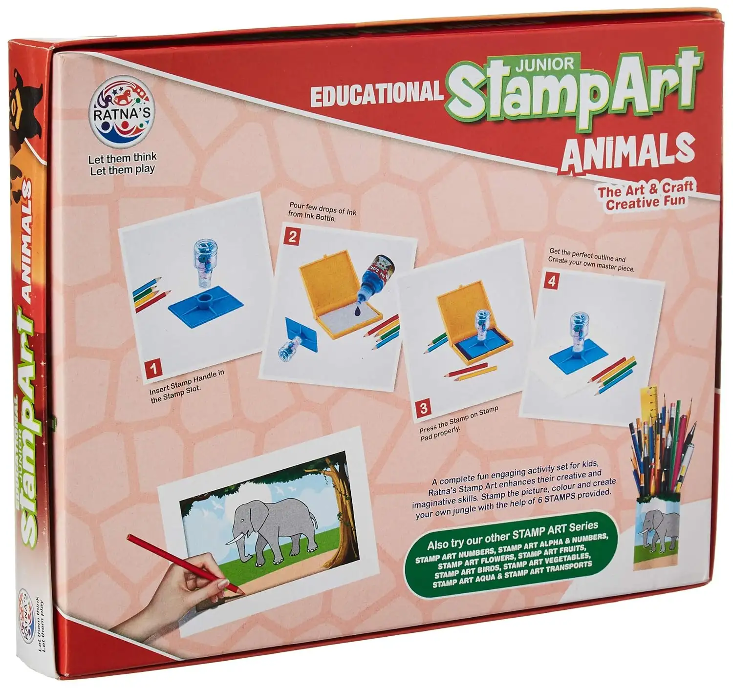 Ratna's Educational Art & Craft Stamp Art Animal Small with 6 Different Animal Stamps for Kids Ages 3+ | Pack Of 1