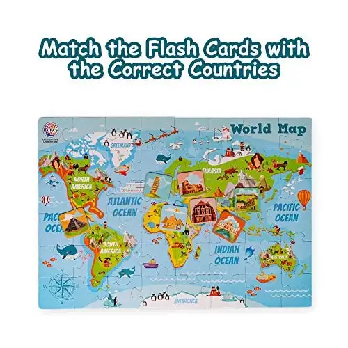 > Contents: 48 Pieces Double Sided Jigsaw Puzzle & 7 Double Sided Flash Cards containing 7 wonders