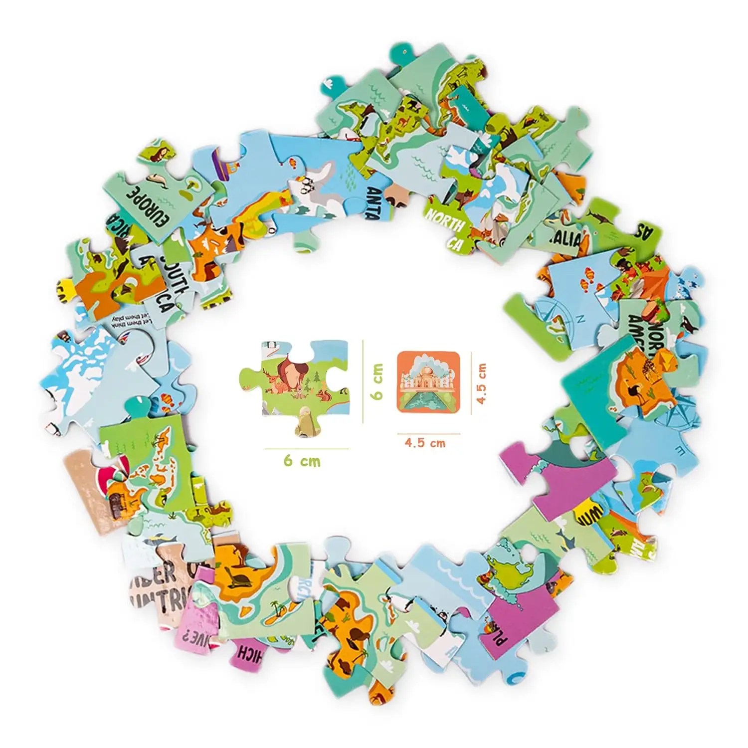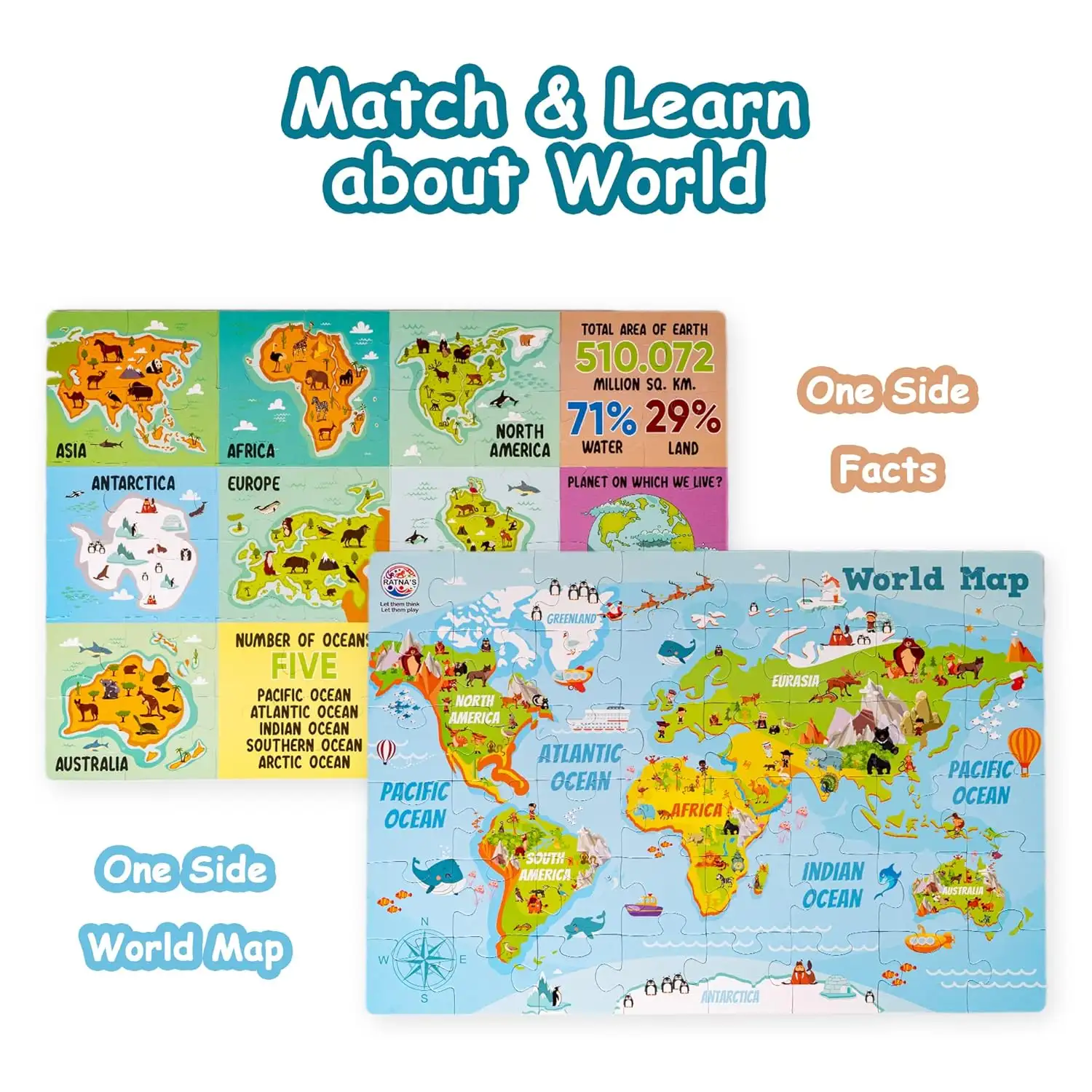 > 1st side of the puzzle contains World Map jigsaw & 2nd side of puzzle gives information about World's Continents, Oceans, Countries, etc. This Jigsaw Puzzle provides educational value to the kids.