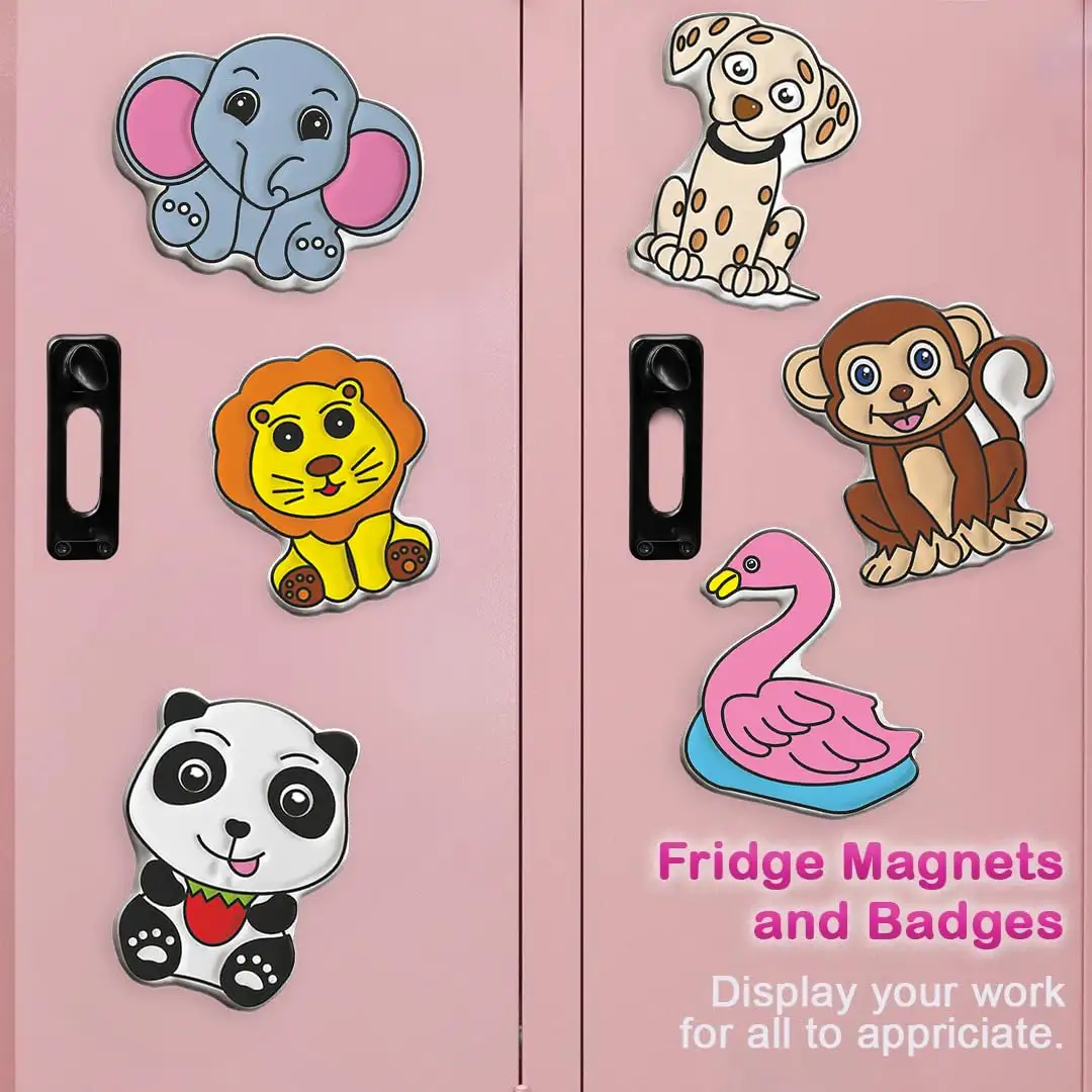 > Fridge Magnets and Badges: Once painted, the animal figurines can be used as fridge magnets or badges for added fun and functionality. Kids can proudly display their artistic creations or wear them as badges.