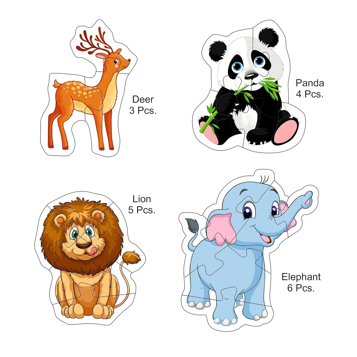 > The Wild Animal Puzzle - A Set of 4 Jigsaw Puzzles for Kids above 4+ Years: Engaging activities for children, designed to be fun and stimulating while promoting brain development and problem-solving skills.