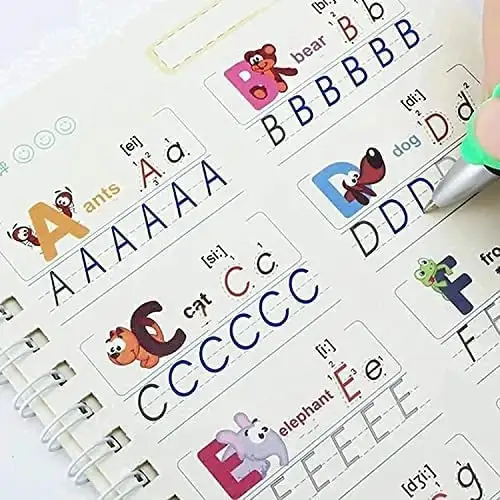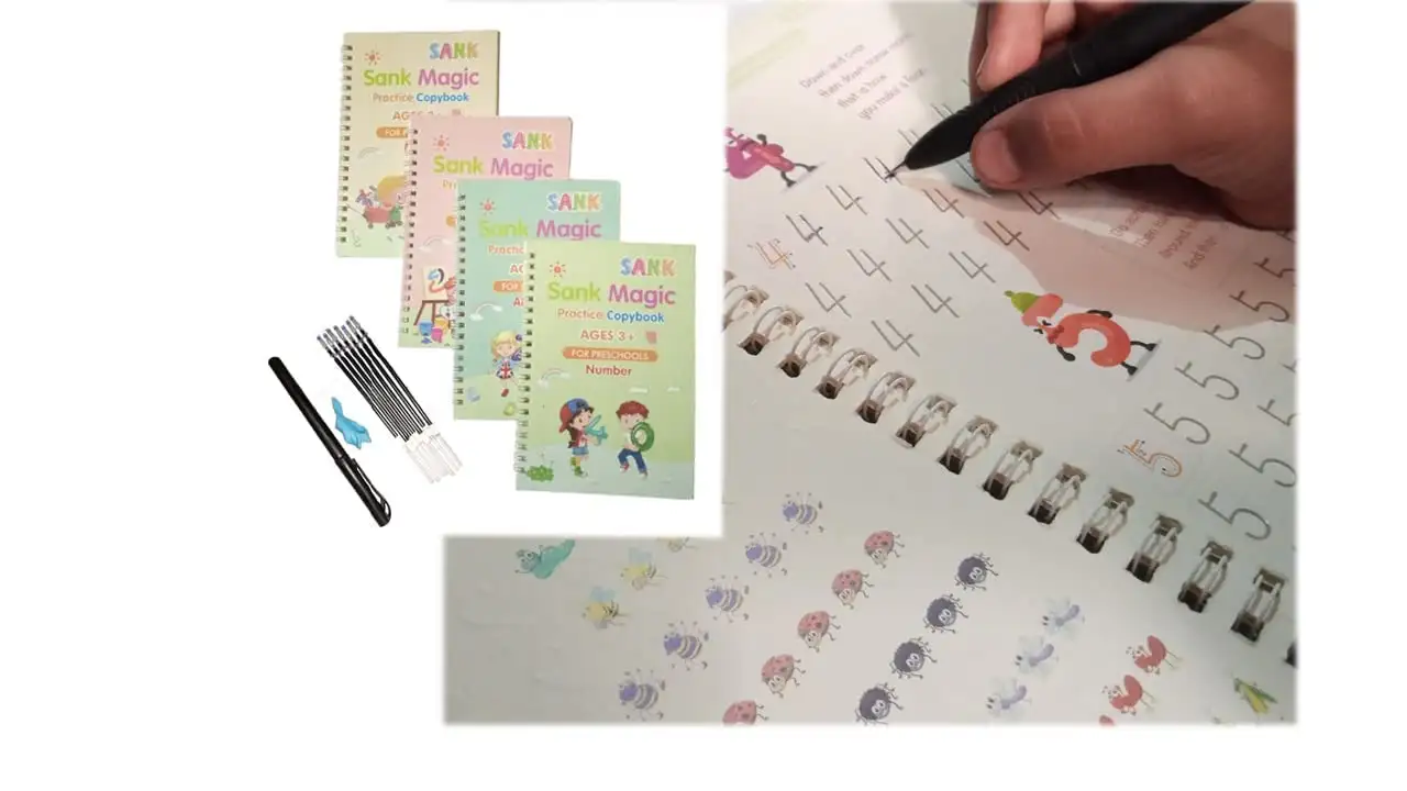 Sank Magic Book Practice Copybook, 4 Book + 10 Refill + 1 Pen, Pink, Children's Early Learning Book | Pack Of 1