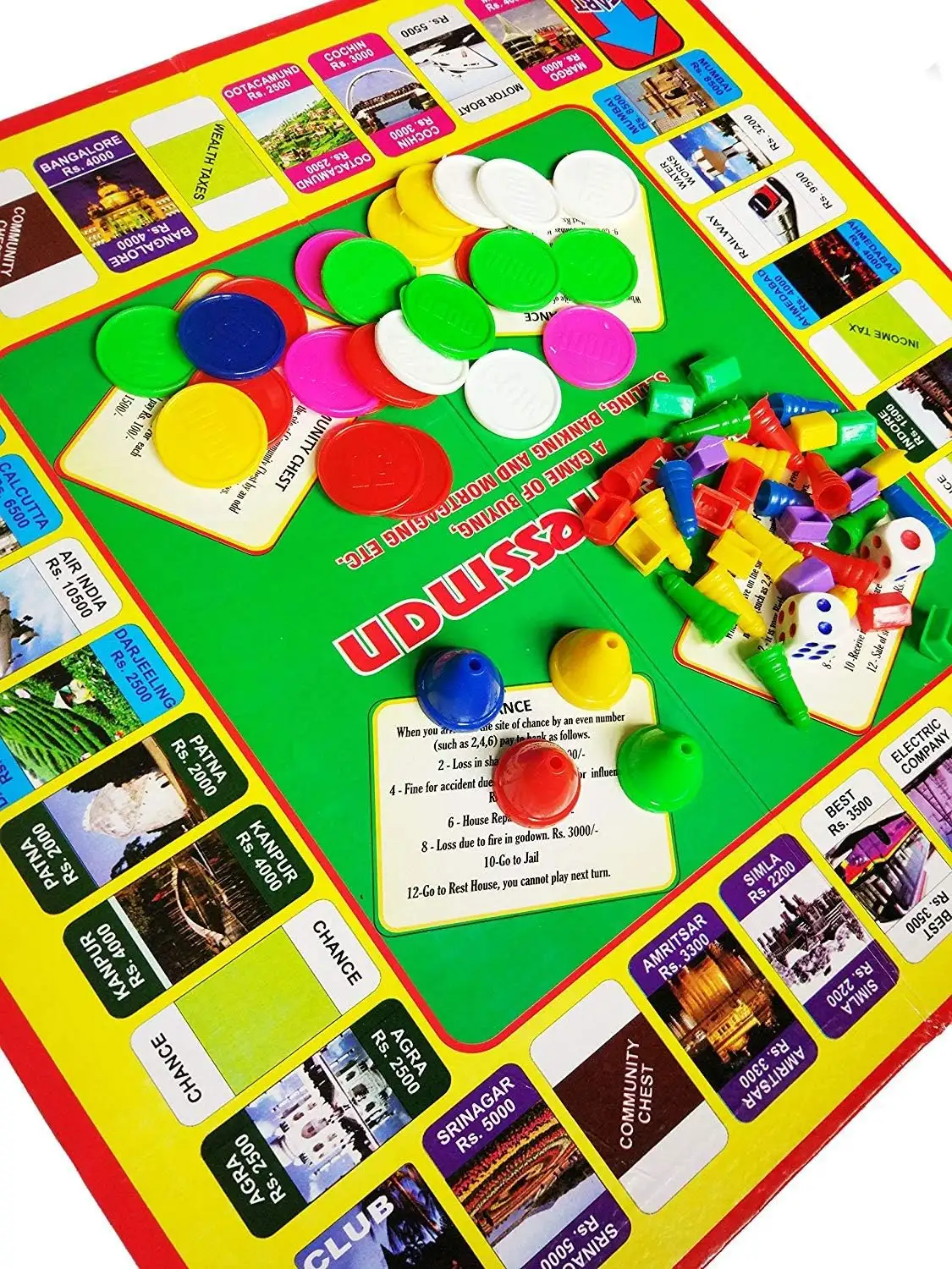 > COMPONENTS INCLUDED: Complete set with game board, plastic currency, property cards, and detailed instruction manual