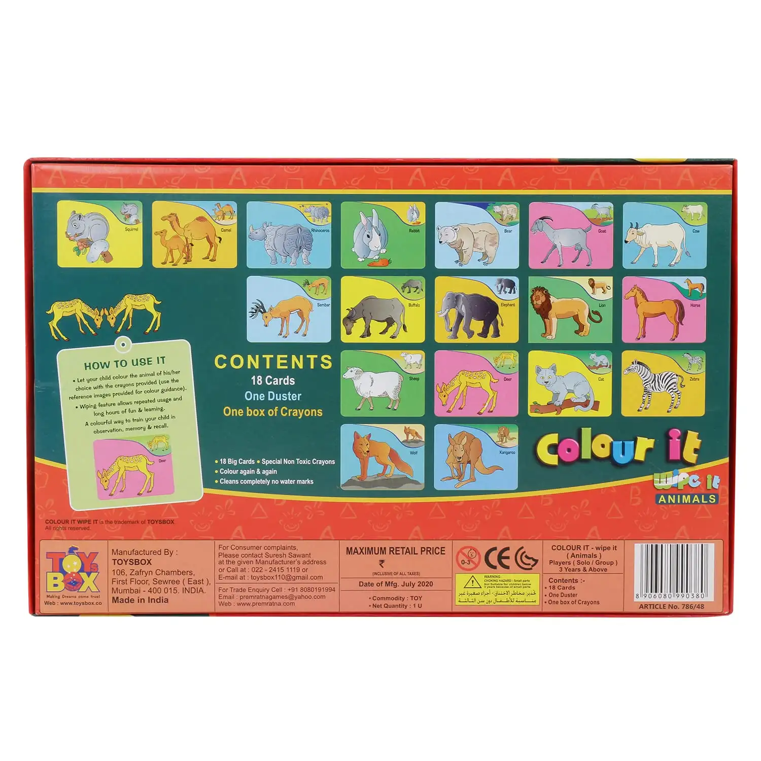 > Colour it - wipe it(Animals) a great way to introduce your child to Animals, through hand - eye co - ordination.