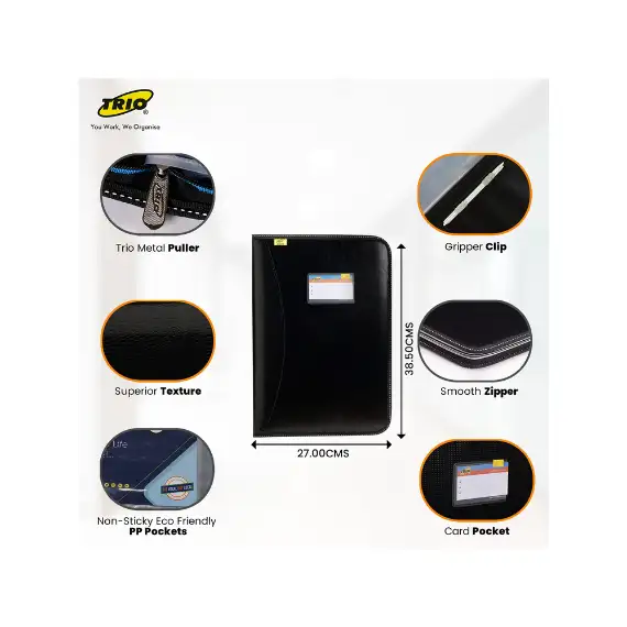 Trio PU Leather Multipurpose Professional File Folders for Certificates,Documents Holder,Document Bag, Portfolio, Executive File Legal Size Documents Holder with 10 POKET 20 PAGES | PACK OF