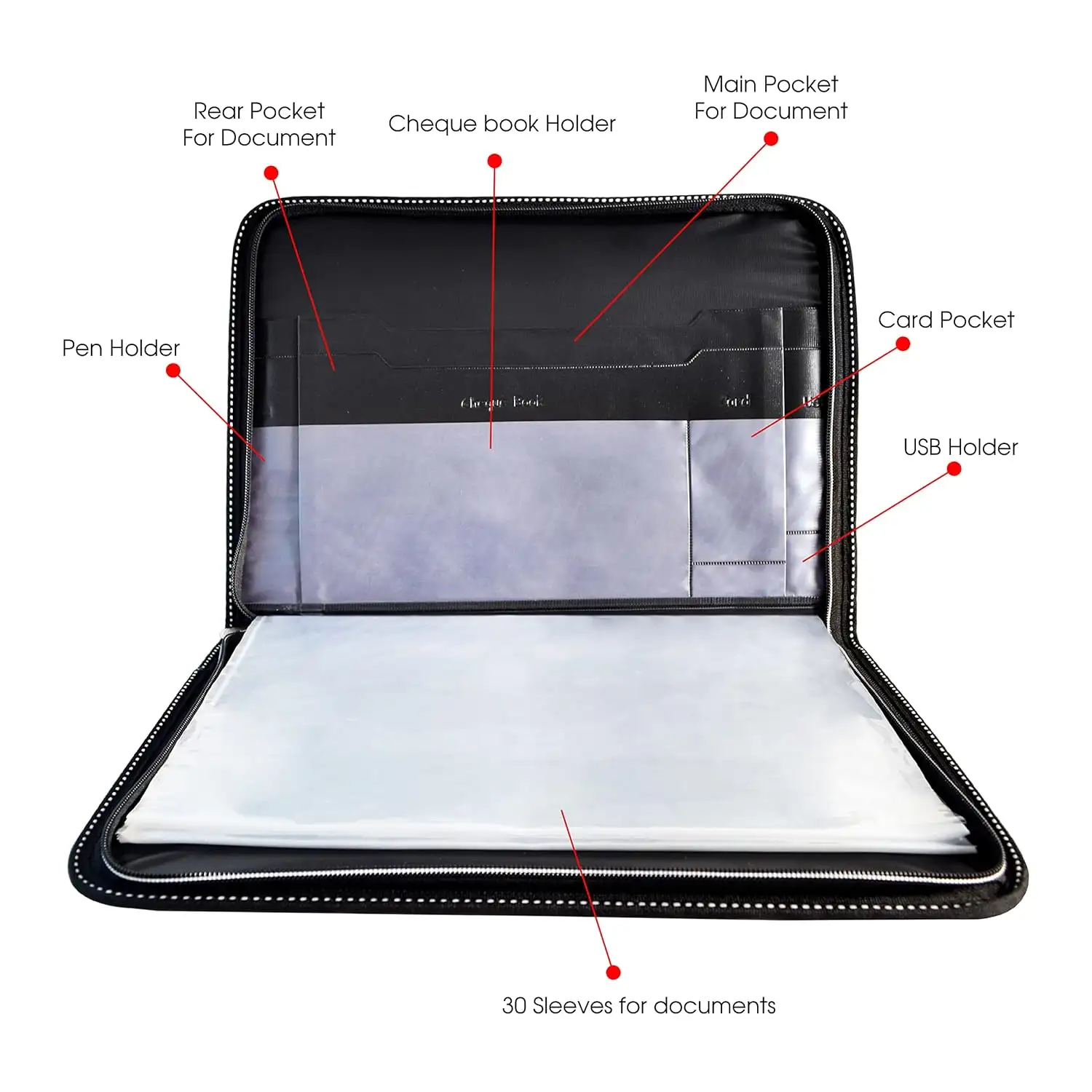 > Design - Exceptional design and attractive interior design with one see through and other covered multi credit card / business card slots. It has expandable document holder. Thickened zipper, smooth and durable without jamming. The hemming design scratches the surface of the folder in order to avoid accidental collision.