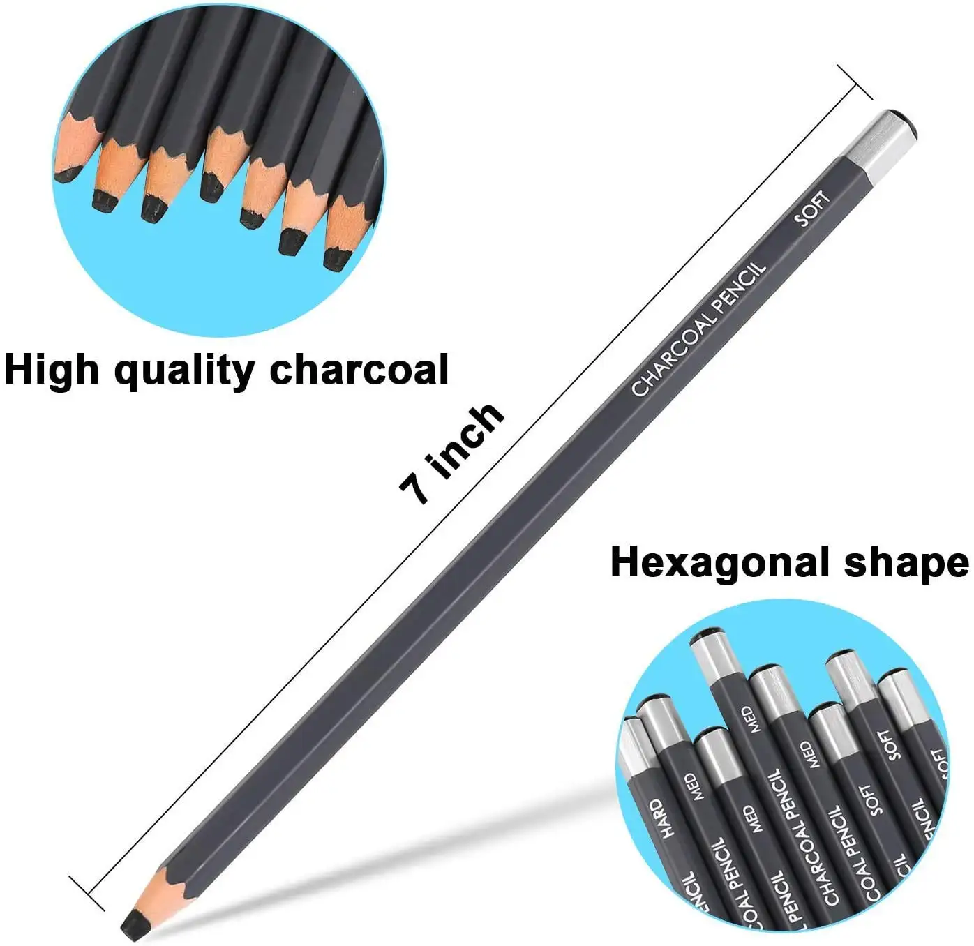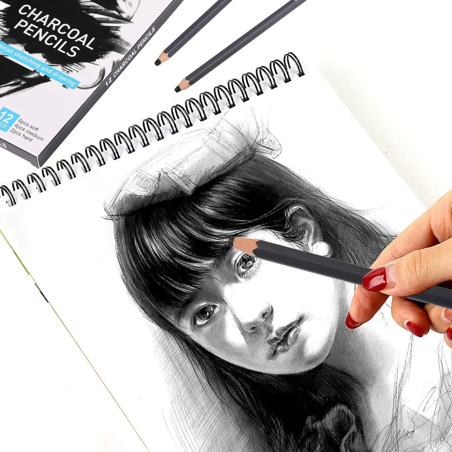 Worison Professional Charcoal Pencils Drawing Set - 12 Pieces Soft Medium and Hard Charcoal Pencils for Drawing, Sketching, Shading, Artist Pencils for Beginners & Artists | Pack Of 1