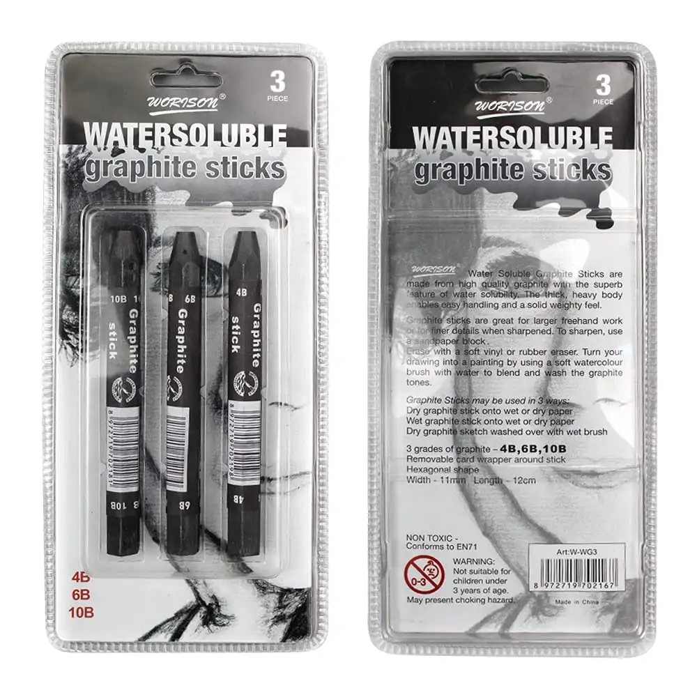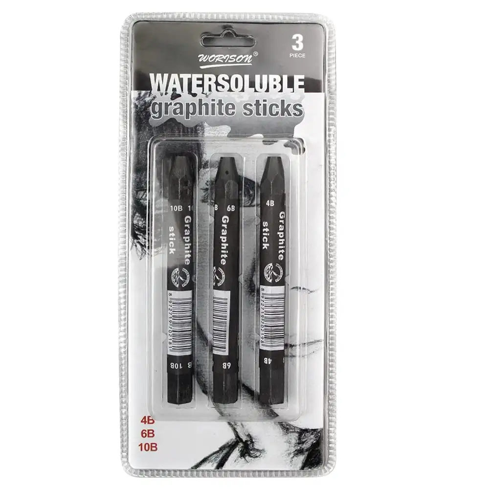 worison Water Soluble Chunky Graphite Stick 3-Pcs, for Sketching and Drawing | Pack Of 1