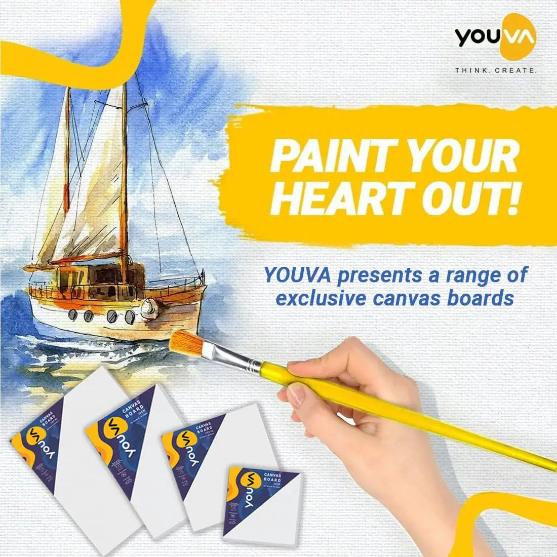 YOUVA Navneet Primed Canvas Board for Acrylic and Oil Colour Painting | 16 x 20 inch | for Students and Budding Artists | Pack Of 1
