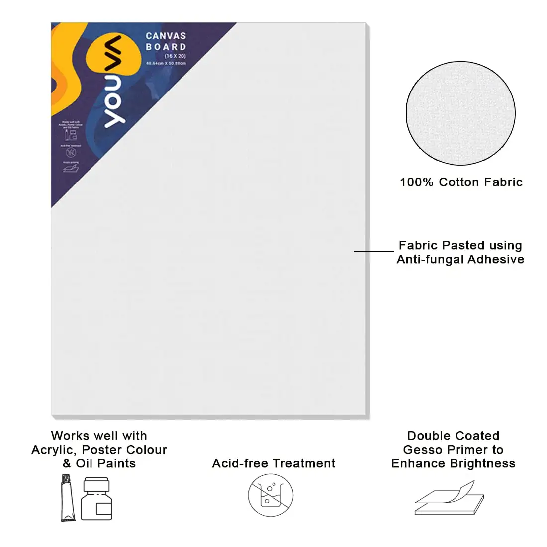 > Youva Canvas Boards are made from 100% cotton fabric and come in medium grain texture.