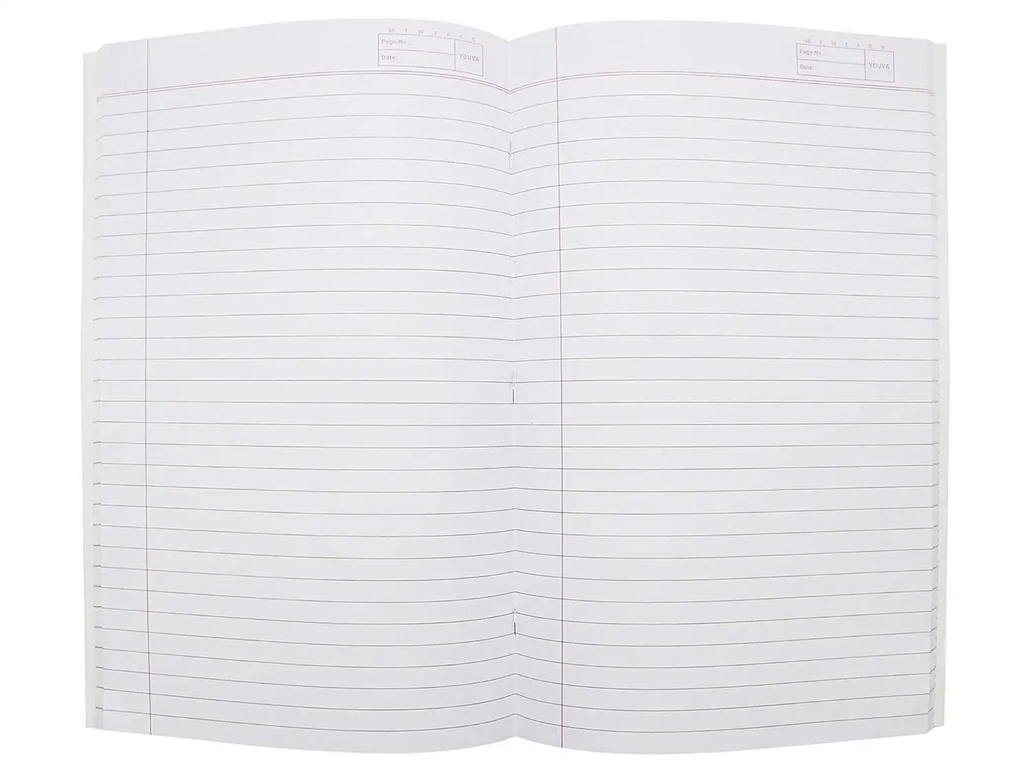 > The notebook is full-bound which means all pages are completely sewn so that they are held together strong inside a hard cover. The pages have single -line ruling which helps younger children to learn writing words and sentences. It is mostly used to practice writing in Devnagri script i.e. primarily Hindi, Marathi and Sanskrit.